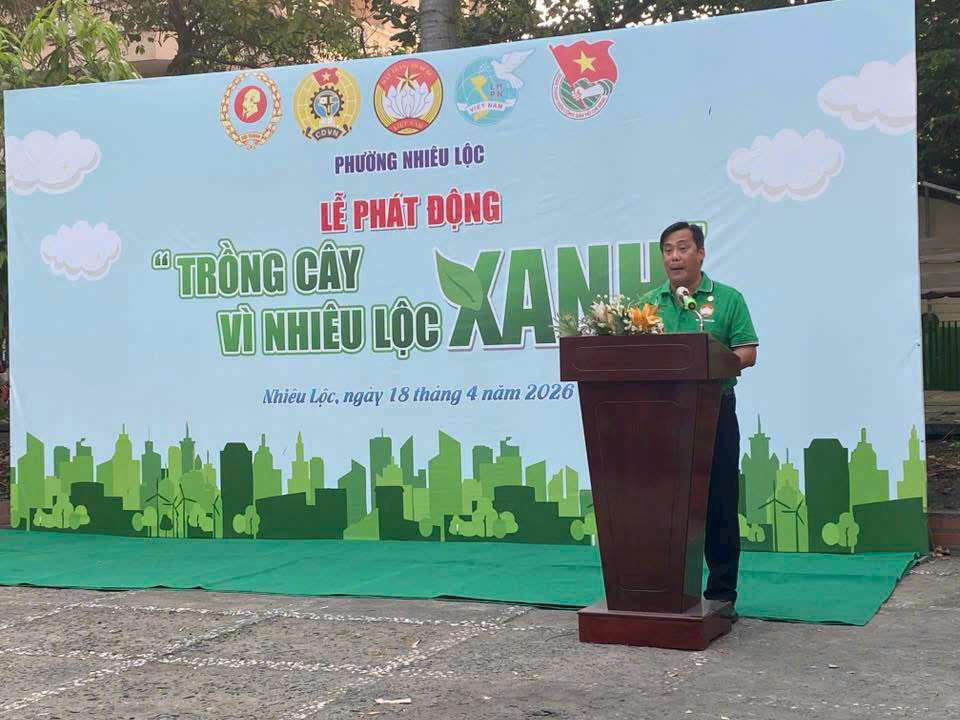 Sáng 18/4, Ủy ban MTTQVN phường Nhiêu Lộc (TPHCM) tổ chức Lễ phát động trồng cây vì phường Nhiêu Lộc xanh năm 2026, mở đầu chuỗi hoạt động “Nhiêu Lộc xanh – Nếp sống xanh” nhằm lan tỏa ý thức bảo vệ môi trường trong cộng đồng dân cư.