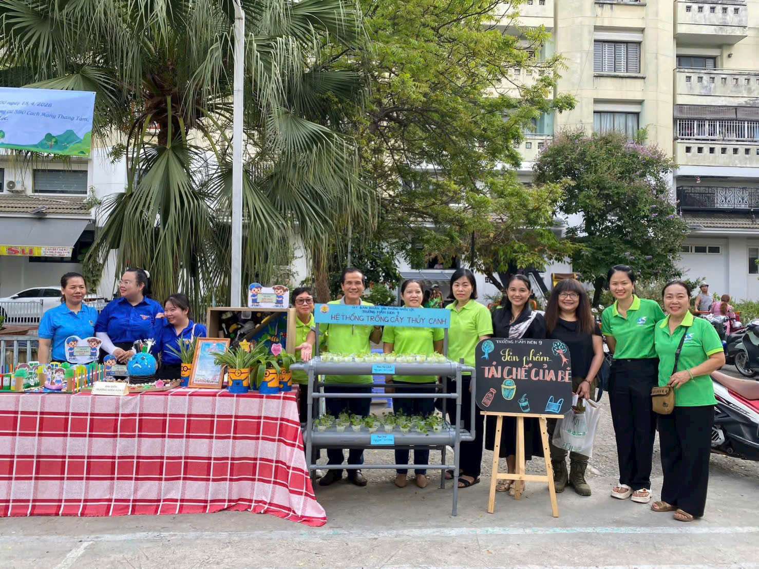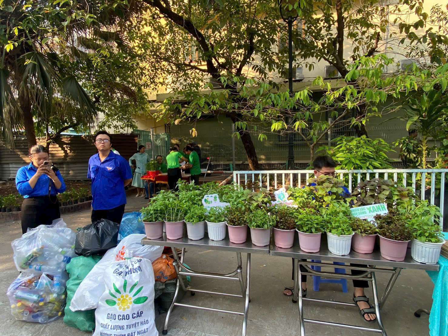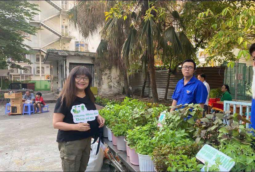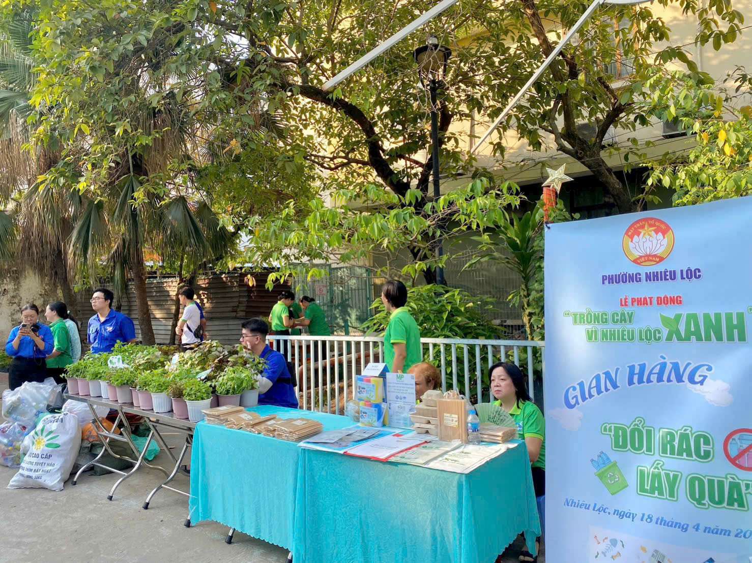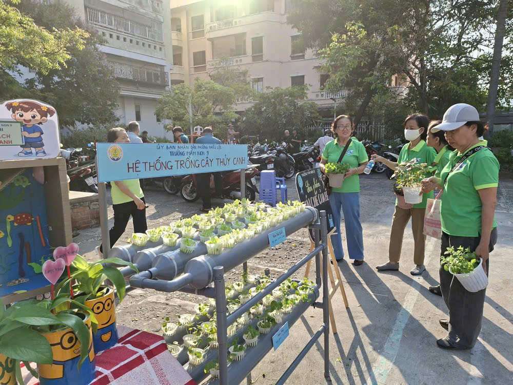 Trong khuôn khổ chương trình, Ủy ban MTTQVN phường cũng tổ chức trưng bày gian hàng “Sống xanh”, giới thiệu các sản phẩm thân thiện với môi trường như túi vải, ống hút tre, sản phẩm tái chế; gian hàng “Phân loại rác”, hướng dẫn phân loại rác tại nguồn và trưng bày mô hình minh họa; cùng gian hàng “Đổi rác lấy quà”, thu gom chai nhựa, giấy, tập sách cũ, lon bia, lon nước ngọt… để đổi lấy cây xanh và nhu yếu phẩm.